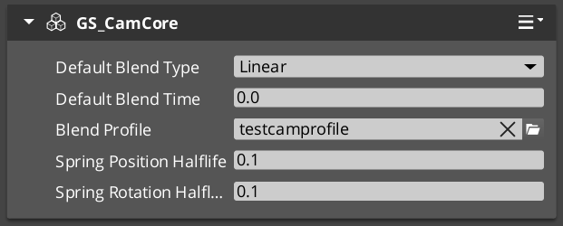 Create a Blend Profile Data Asset and add it to the CamCore Blend Profile inspector slot.