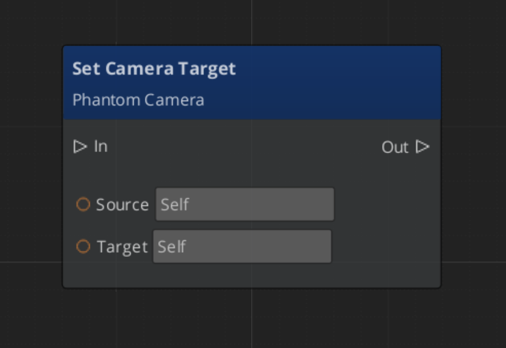 The Cam Manager holds the global camera target — the entity that follow and look-at cameras will track. Setting the target here propagates it to the active phantom camera system.
