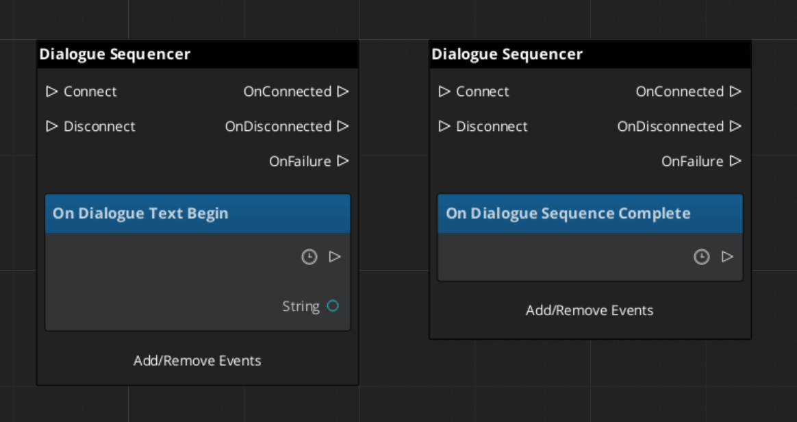 DialogueSequencerNotificationBus | OnDialogueSequenceComplete | Fires when the sequence reaches its end node. |