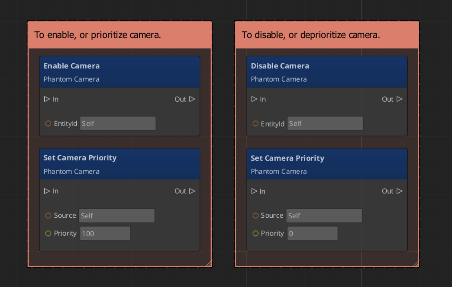 | Make a camera dominant | (entity activation) | Enable the Phantom Camera entity |