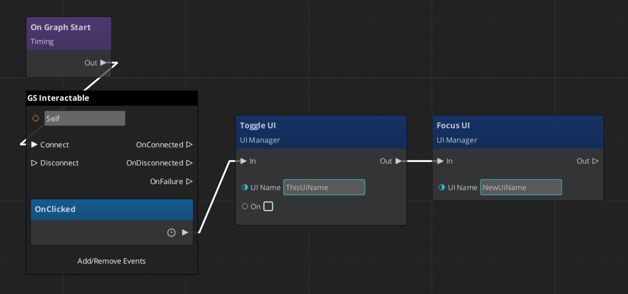 GetFocusedUI | Returns the name of the canvas currently on top of the focus stack. |